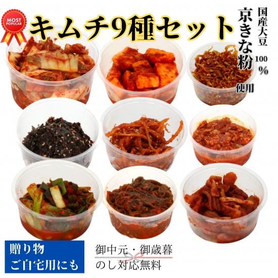 【送料無料】キムチ9種セット(白菜450g/長いも260g/チャンジャ140g/岩のり味付け90g/ちりめんジャコ60g/サキイカ味付け80g/ネギ130g/切り干し大根100g/もずく100g)