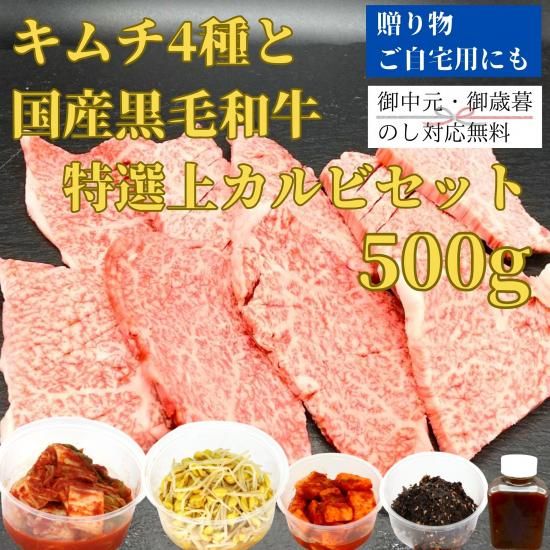 キムチ4種と国産黒毛和牛特選上カルビ500gセット