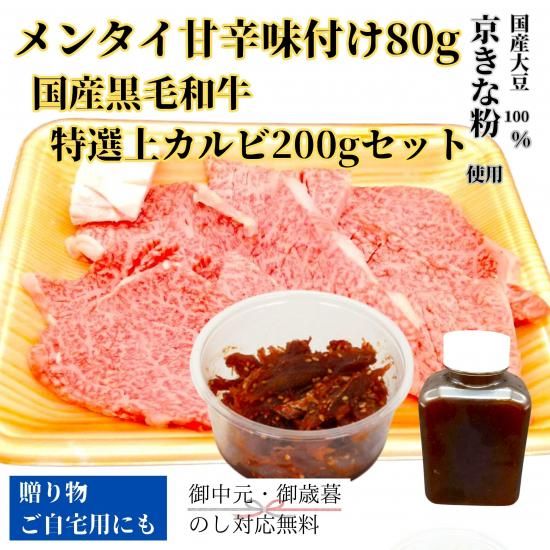 メンタイ甘辛味付け80gと国産黒毛和牛特選上カルビ200gセット