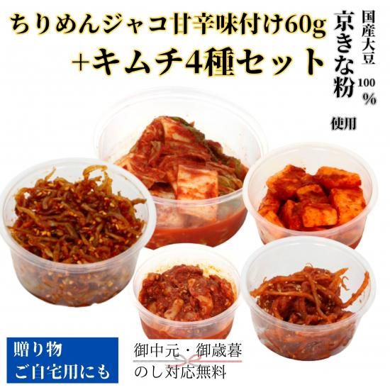 【送料無料】ちりめんジャコ甘辛味付け60g+キムチ4種セット