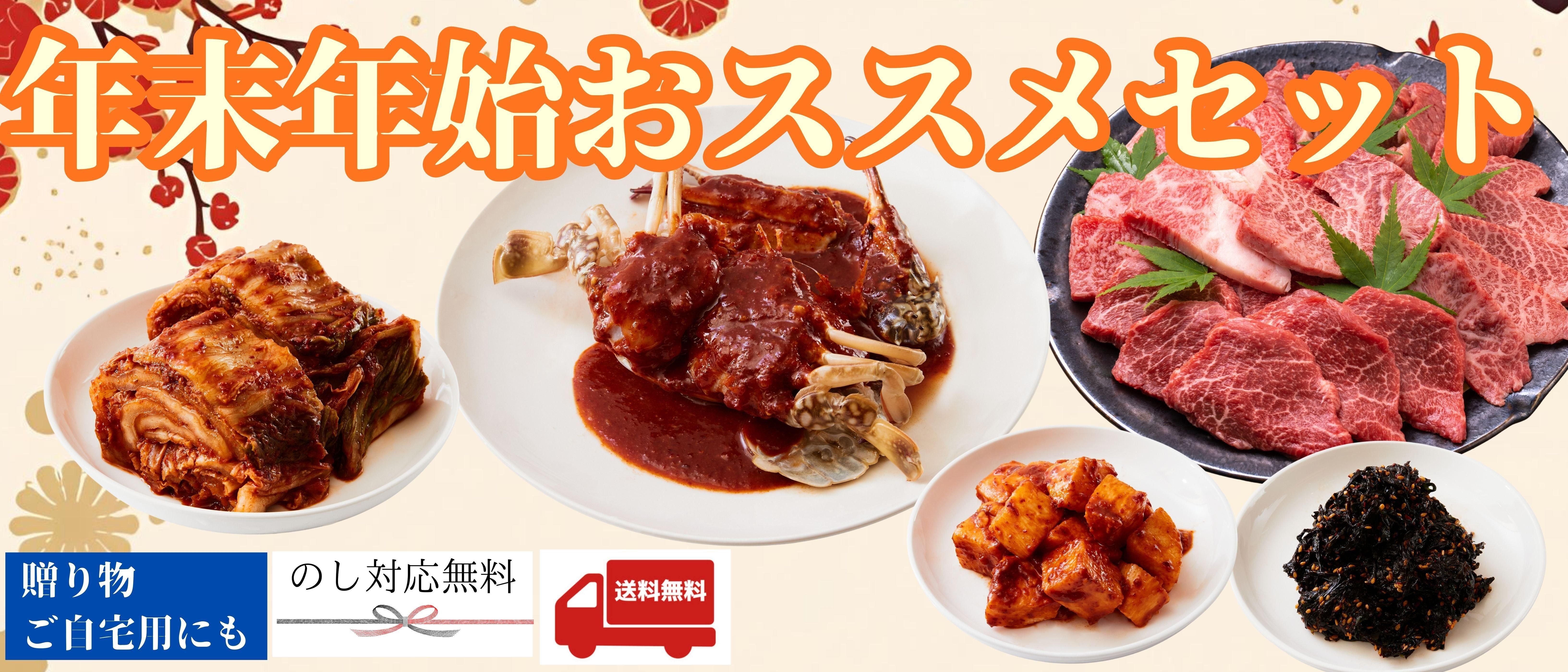 【送料無料】キムチ4種とケジャンセット (ケジャン1杯・白菜キムチ270g・長いもキムチ130g・岩のり味付け90g・もやしナムル200g)